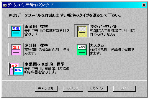 【次へ】をクリックしていき、最後に【完了】をクリックすると、データファイルが作成されます。