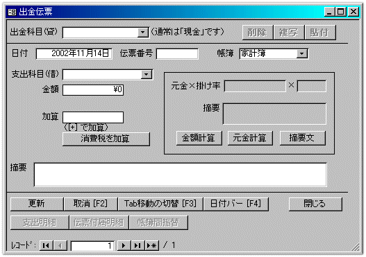 この画面でも領収書の入力と同様、マウスを使わずにキーボードだけで入力することができます。