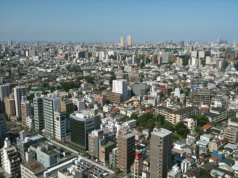 以下、25F、展望ラウンジから、窓ごとにiPhone 3GSで撮影したものを並べました。2009/08/15 14:30 P.M.、お盆なので都心にしては奇麗な空気だと思います。